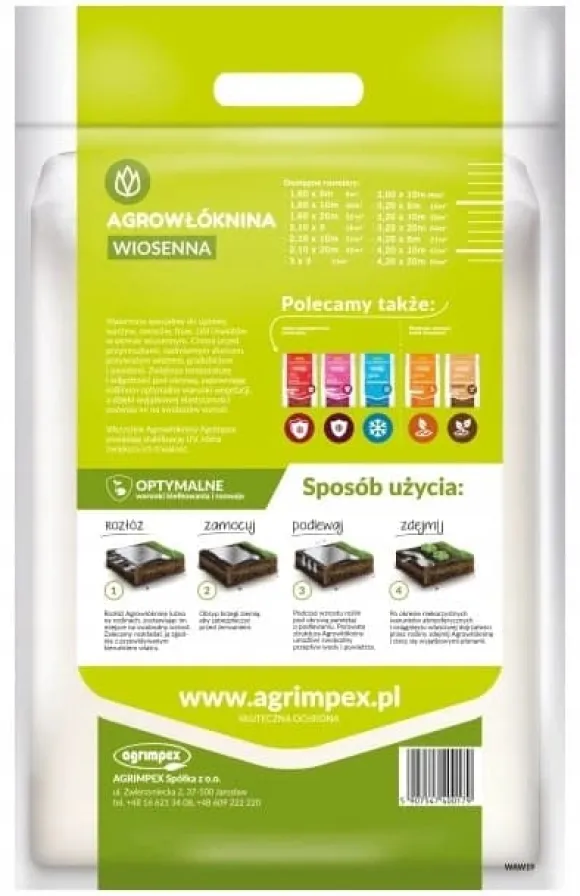Vårtäckande agrotextil har speciellt framtagits för odling av: grönsaker, frukt, gräs, örter, blommor Denna agrotextil skyddar mot ogynnsamma förhållanden, såsom: frost, överdriven sol,