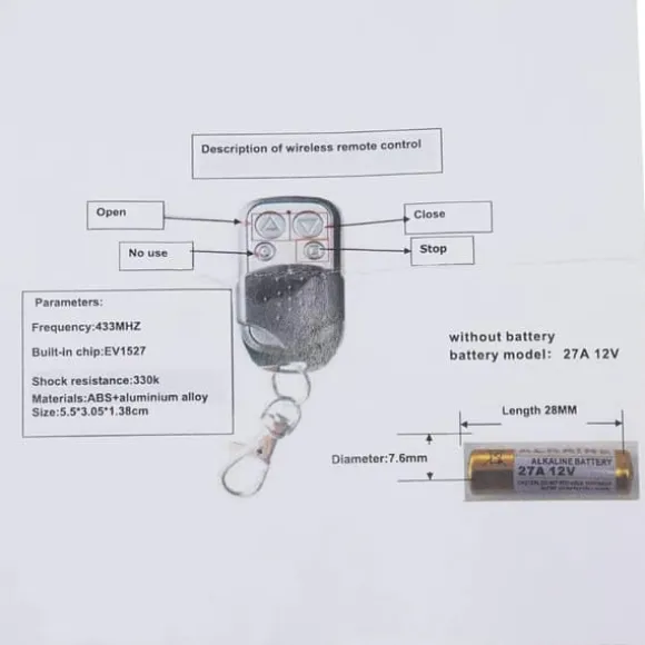 Enkel fjärrstyrning – De fyra intuitiva knapparna låter dig öppna, stänga och stoppa din skjutgrind på distans med ett tryck, vilket ger smidig och säker åtkomst.