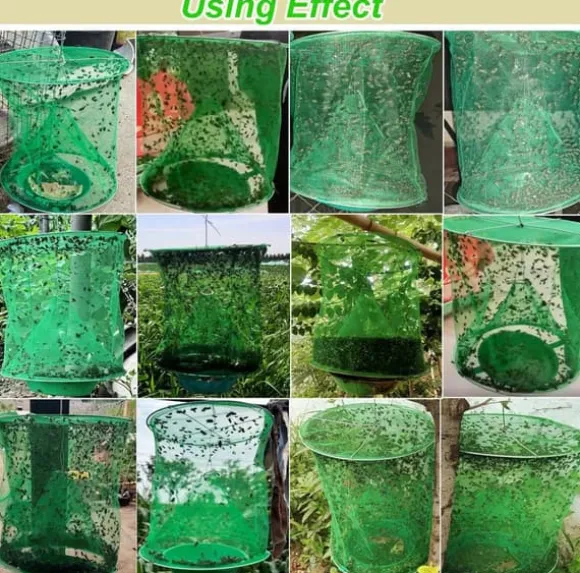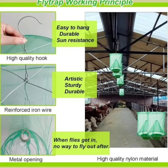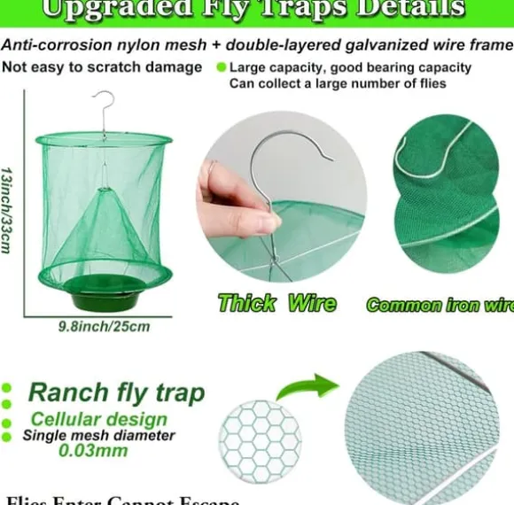 Tillverkad av tjockt, högkvalitativt metallnät som gör fällan stabil och hållbar. Kan enkelt hängas upp, vikas ihop och återanvändas. När påsen är full, ta bort betbrickan och vänd på nättratten för att tömma. Efter enkel rengöring är fällan redo för ny användning både inomhus och utomhus.