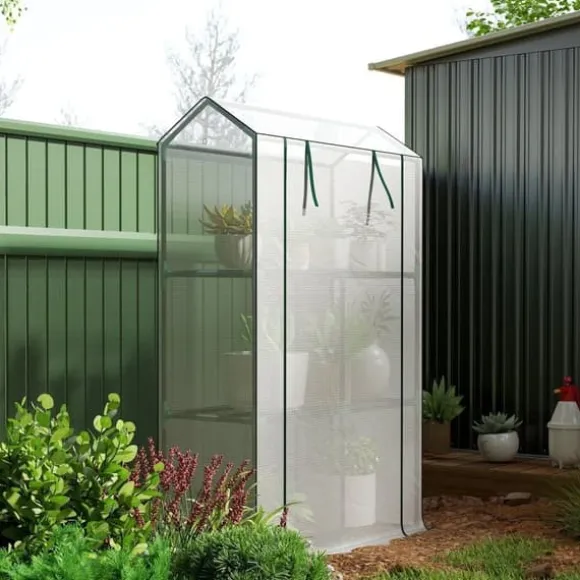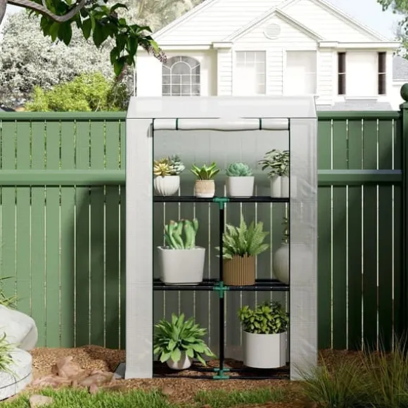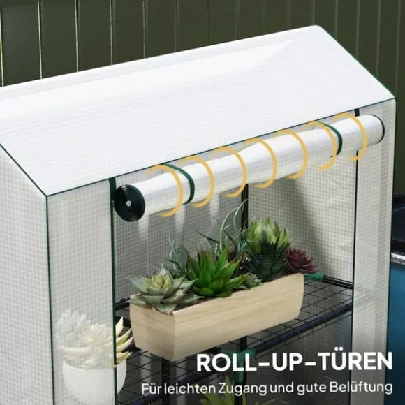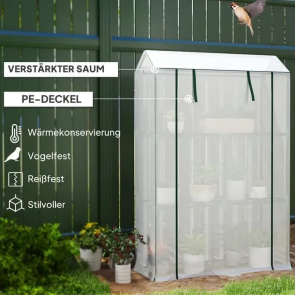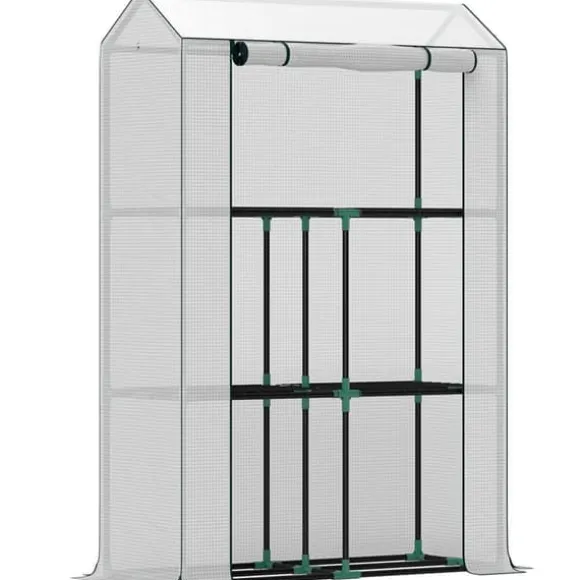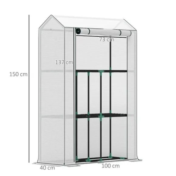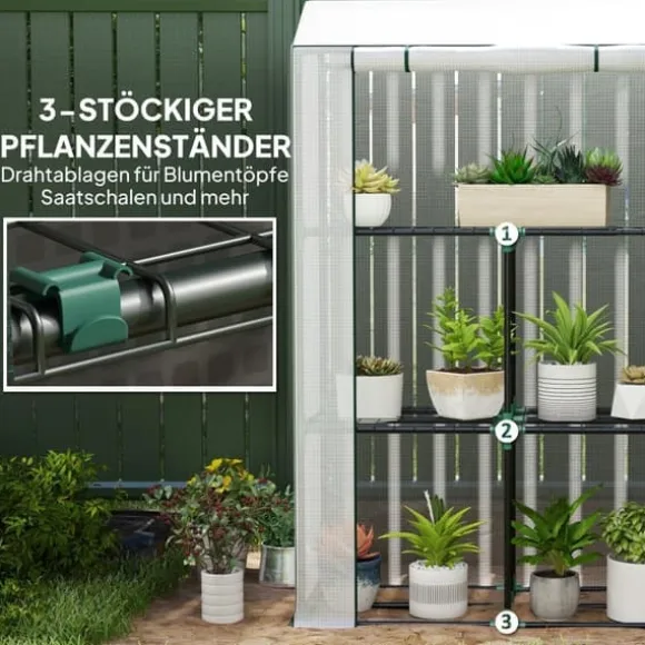 – Tre nivåer av växtställ: Detta tomathus med trådhyllor erbjuder gott om utrymme så att dina växter kan andas och frodas. Perfekt för att organisera blomkrukor och sålådor, vilket effektivt ökar din trädgårdseffektivitet