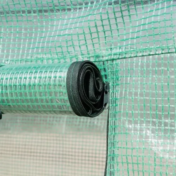 – Dörr med dragkedja och upprullningsbara fönster: Tunneldrivhuset har sex upprullningsbara fönster med myggnät för ventilation och temperaturkontroll. De är dessutom lätta att öppna och stänga vid behov.