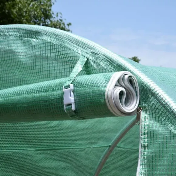 – Det optimala växthuset: De transparenta folierna är ljusgenomsläppliga, så att dina växter alltid får tillräckligt med ljus och värme och samtidigt skyddas från väder och djur. Fönstren och dörrarna med dubbla dragkedjor garanterar god luftcirkulation.