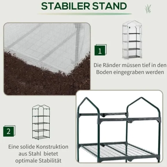 – Kompakt växthus: Mini-växthuset är perfekt för odling av ungplantor. Det är utformat för att spara utrymme och passar i nästan alla trädgårdar.
