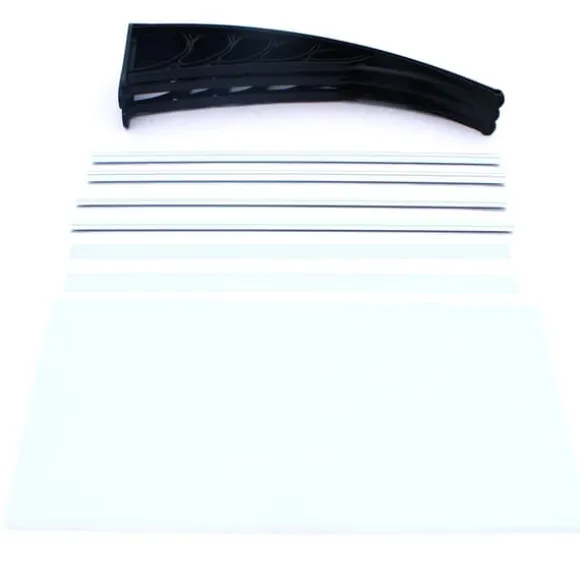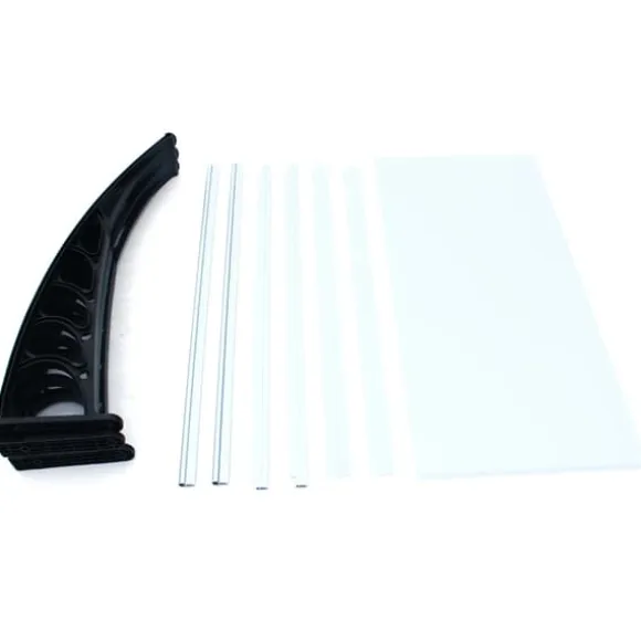 Detta svarta dörr- och fönstertak ger pålitligt skydd mot regn, snö och skadlig solstrålning utan att blockera dagsljuset. Den transparenta polykarbonatskivan med UV‑skydd bevarar ljusinsläppet samtidigt som den reducerar blekning av dörrar och fasader.