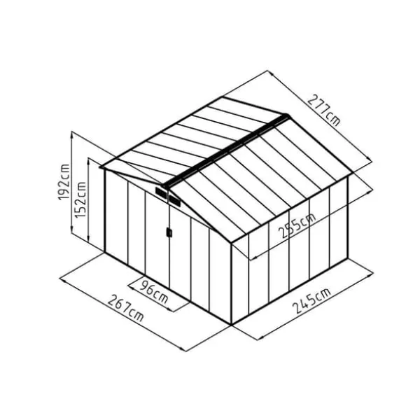 Kombinationen av mörkgrå och vita färger garanterar elegans och passar in i nästan vilken trädgård som helst. Förrådet är lätt att montera trots sin fasta struktur. Det är stöt- och inbrottsbeständigt och UV-skyddat. Förrådet har ventiler, säkerhetshörn och skjutdörrar!