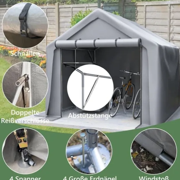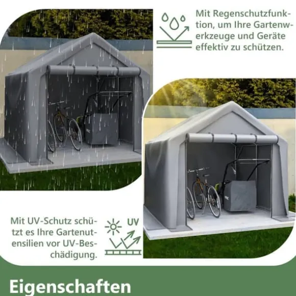 Stort förvaringsutrymme: Med måtten 244x241x217 cm erbjuder detta garagezelt gott om plats för förvaring av cyklar, gräsklippare, trädgårdsmöbler och mycket mer.