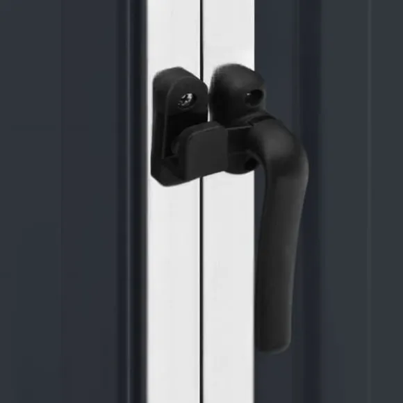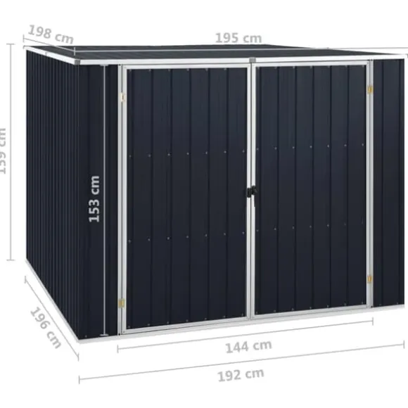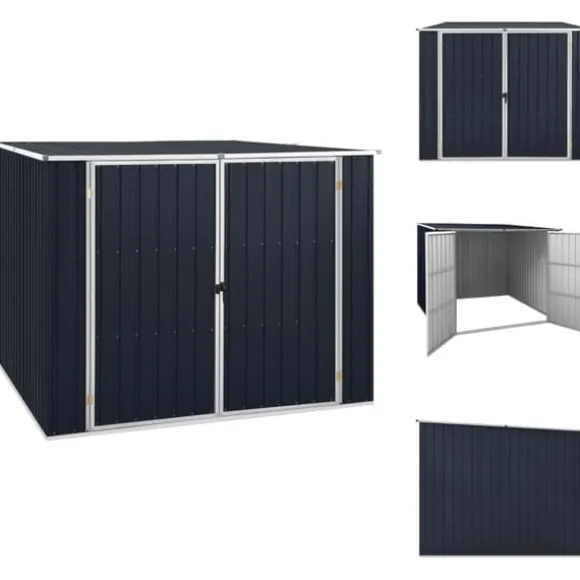 Detta trädgårdsskjul är tillverkat i galvaniserat stål, kräver mycket lite underhåll och är mycket hållbart. Dubbeldörren framtill gör det enkelt att ta sig in och ut. Dessutom rinner regnvatten av taket tack vare dess sluttande design.