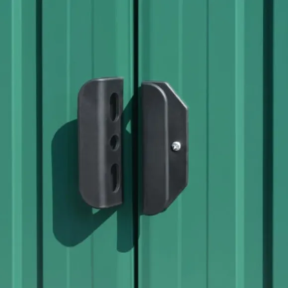 Förvaringsskjulet har ventiler som säkerställer utmärkt ventilering. Dess dubbla skjutdörrar framtill gör det enkelt att gå in och ut. Tack vare den galvaniserade stålkonstruktionen är verktygsskjulet hållbar och starkt och rostar eller påverkas inte av dåliga väderförhållanden.