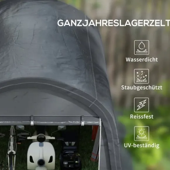 – Rymligt förvaringstält för utomhusbruk: Vårt förvaringstält skyddar mot smuts, UV-strålning, skräp och regn. Perfekt för motorcyklar, cyklar, små gräsklippare, ved eller trädgårdsredskap