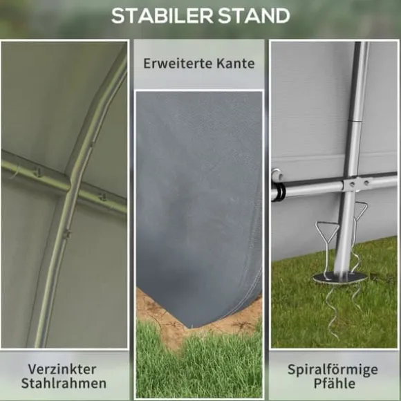 – Robust: Vårt förvaringstält för utomhusbruk är tillverkat av tjockt galvaniserat stål för att förhindra sprickor, flagnande och andra vattenrelaterade problem. Gräv ner de förlängda kanterna på vårt tält och fäst det med de medföljande tältpinnarna i mjuk mark för att täta det bättre