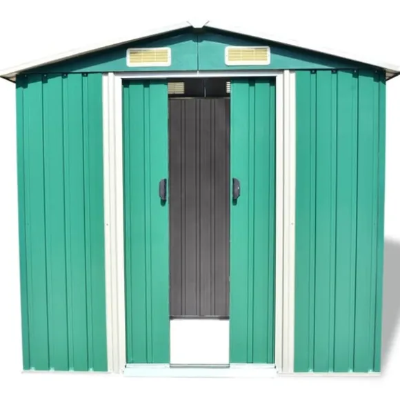 Detta förråd har fyra ventilationsöppningar, två framtill och två baktill, vilket säkerställer utmärkt ventilation. De dubbla skjutdörrarna framtill möjliggör enkel in- och urstigning.