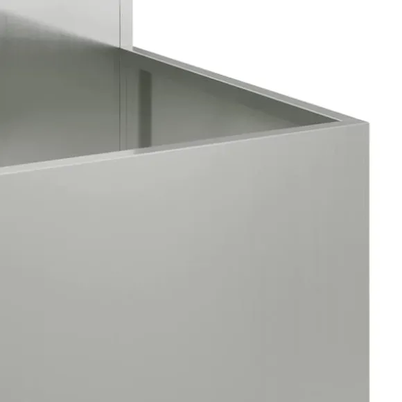 Den här industriella galvaniserade stålplanteringslådan kombinerar stil med funktion. Den är för dem som vill att sina utomhusytor ska se bra ut och vara praktiska. Med en snygg finish och stark konstruktion är den ett blickfång, oavsett om den står på en balkong eller i en trädgård.