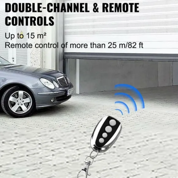 - praktisk fjärrkontroll: levereras med två trådlösa fjärrkontroller, vilket gör att du enkelt kan öppna och stänga din garageport på avstånd.