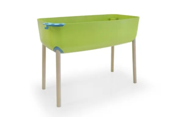 Med denna smarta lilla upphöjda säng kan alla delta i odlingen av örter. Kombinationen av plast- och träben gör att det ser naturligt, miljövänligt och praktiskt ut samtidigt. Träbenen ger styrka och stabilitet, så det tål markens tryck.