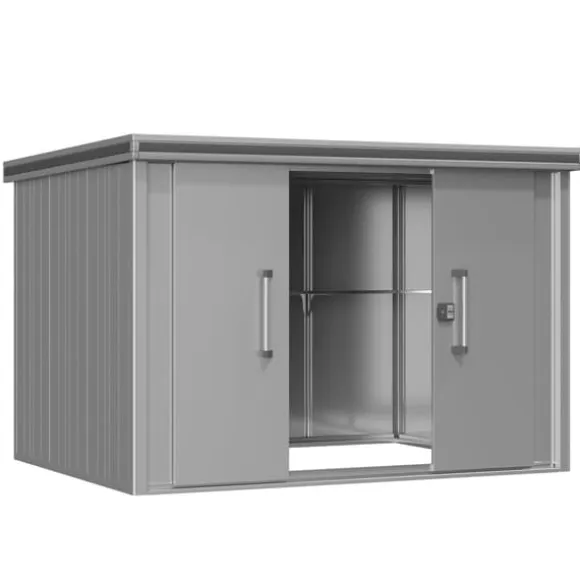 Förvara solstolar, gräsklipparen, verktyg, barnens leksaker och andra trädgårdsredskap och skyddade från väder och vind i redskapsboden. Detta förrådet från GFP kännetecknas särskilt av en mycket hög lastkapacitet till taket och ingångshöjd. Med galvaniserat stål är det här redskapsskjulet väldigt stabilt, väderbeständigt och kan kräver inte mycket skötsel – den perfekta modellen för året runt-användning!