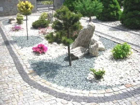Vit Marianna dekorativ sten 8-16 mm kan lätt tvättas efter långvarig användning, vilket ger den ett fräscht utseende. För att uppnå en fin dekorativ effekt rekommenderas det att täcka underlaget med agrotextil och sedan strö över grus.