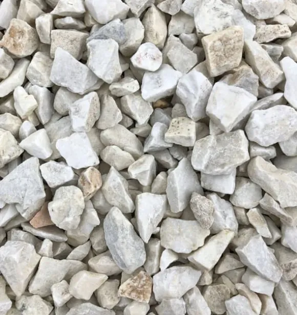 Vit Mariannamarmorkorn med en fraktion på 8 till 16 mm är ett naturligt ballastmaterial med låg vattenabsorption, vitbeige färg och hög mekanisk hållfasthet.