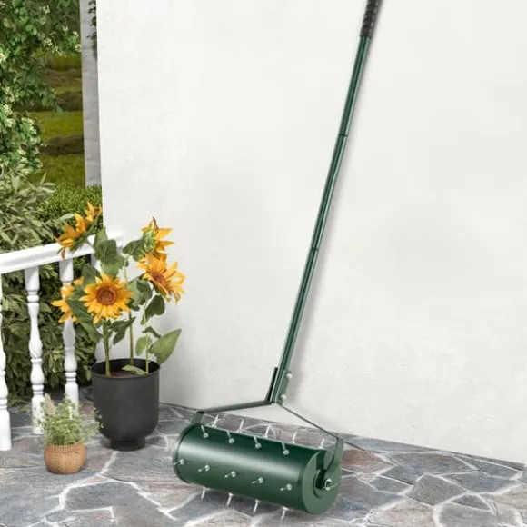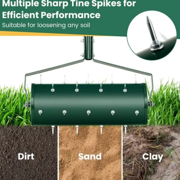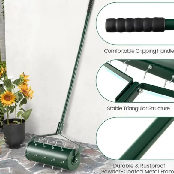 Den 18/21 tum manuella gräsmatteluftraren med avtagbart handtag och tinnar är ett praktiskt trädgårdsverktyg som är utformat för att effektivt lossa jorden och främja växttillväxten. Den har en bekväm, halkfri handtag och rostfria tinnar, vilket gör den lämplig för olika typer av jord och säkerställer lång hållbarhet.