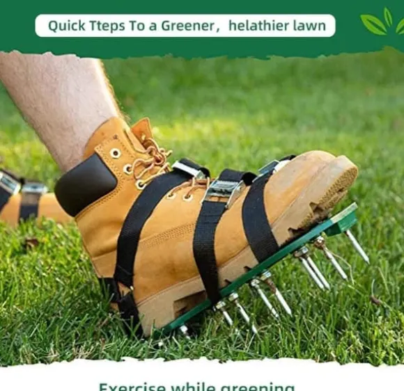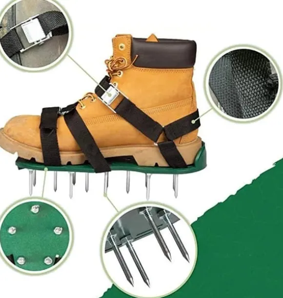 Utrustade med justerbara remmar, halkfria plattformar och hälstöd för en säker passform. Perfekta för upprepad luftning av trädgården, vilket minskar kostnader för gräsmatteskötsel och ger en grönare, friskare gräsmatta. Även lämpliga för installation av epoxigolv och andra beläggningar.