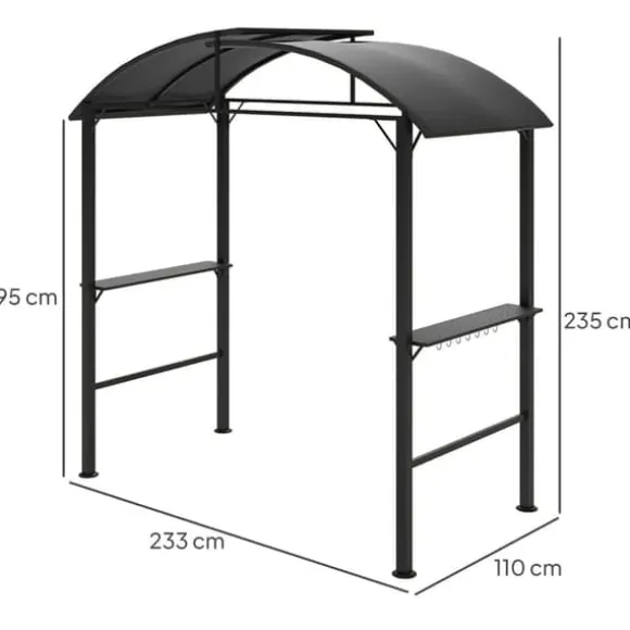 – Sidohyllor: I denna trädgårdspergola finns det tillräckligt med utrymme för dina köksredskap, tallrikar och grilltillbehör så att du bekvämt och komfortabelt kan utöva din grillpassion.