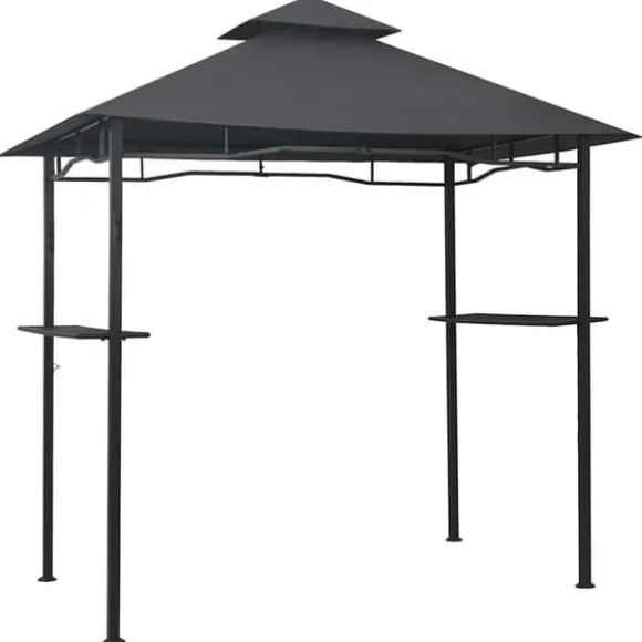 Denna paviljong har en massiv stålkonstruktion och kännetecknas av sin stabilitet och hållbarhet. Det dubbla taket är tillverkat i väderbeständigt och flamsäkert tyg som skyddar dig mot skadliga UV-strålar, regn och potentiella brandfaror. Dessutom har den 2 förvaringsytor så att du kan ha tallrikar, såser och köksredskap inom räckhåll.