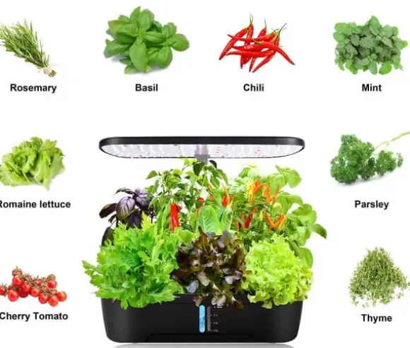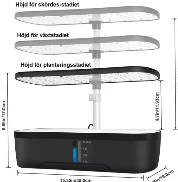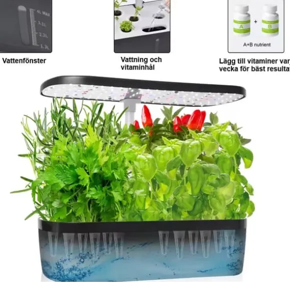 - 20-Watt inbyggd LED Växtbelysning som är ställbar i höjd och med timer