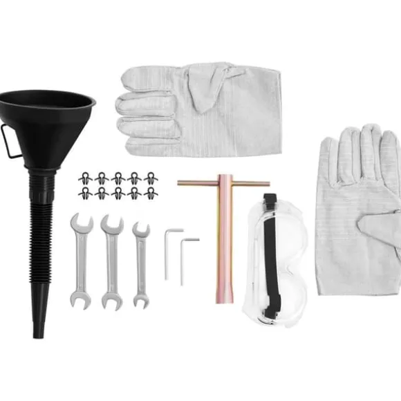 Den effektiva motorn med 5145 W (7 HK) aktiveras genom ”kick-start”. Bränsletanken har en total kapacitet på 3,5 liter, men vid den maximala hastigheten på 3600 varv/minut förbrukar den bara 1,6 liter blyfri bensin per timme. Detta gör den bensindrivna flishuggen särskilt kostnadseffektiv, och innebär att du kan arbeta i mer än 2 timmar utan paus. För din säkerhet är flismaskinen utrustad med en nödströmbrytare. Klingorna kan enkelt tas bort för underhåll.