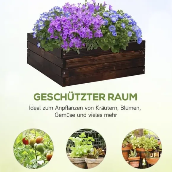 – Perfekta egenskaper: Vår höga planteringslåda är tillverkad av 100 % giftfritt tallvirke, som är känt för sin styrka och formbeständighet. Det stabila tallvirket är miljövänligt och utan underlag ger det dina växter tillräcklig luft- och vattencirkulation