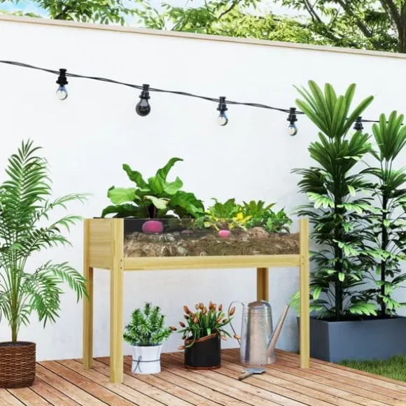 – Effektivt dräneringssystem: Denna höga rabatt i trä är utrustad med två dräneringshål och ett svart tygfoder, vilket ger denna planteringslåda optimal vattenavrinning. På så sätt förebyggs enkelt rotröta