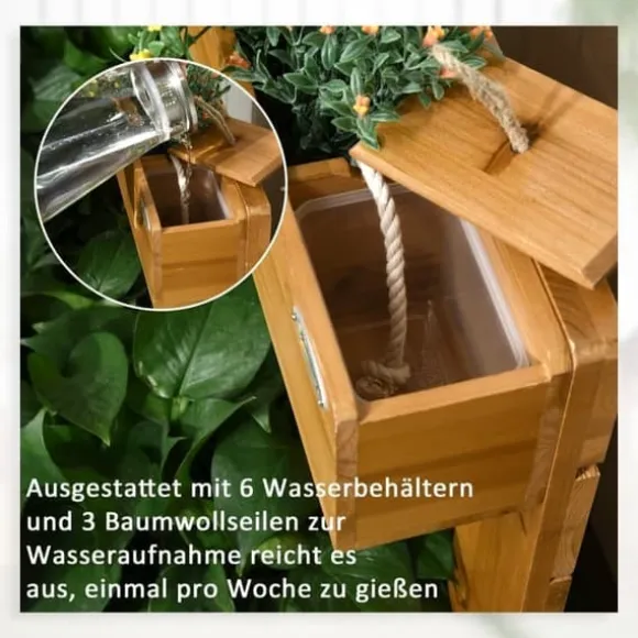 – Praktisk design: med sex vattenbehållare och tre bomullsrep som absorberar vattnet räcker det med att vattna en gång i veckan.