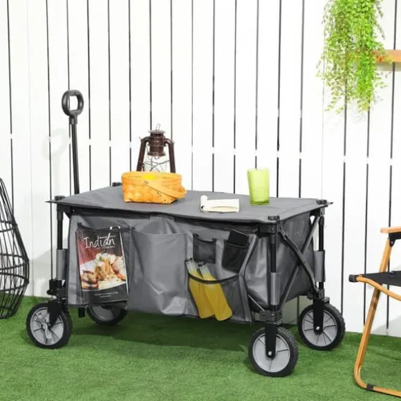 – Praktisk hopfällbar design: Denna trädgårdsvagn kan snabbt fällas ihop och bäras med ett handtag och passar i alla standardbagageutrymmen. Dessutom finns det en utfällbar bräda som kan användas som ett litet bord