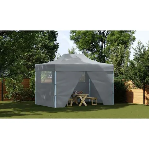 Detta partytält har ett UV- och vattenresistent tak som är tillverkat i 600D-oxfordtyg med PVC-beläggning och är därför perfekt för användning utomhus. Partytältet är utformat med 4 sidoväggar med klara fönster för fullt skydd. Ramen är tillverkad i rostbeständigt pulverlackerat stål, vilket gör tältet stadigt och hållbart. Pop-up tältet är hopfällbart för enkelt förvaring och transport. Det är lätt att montera.