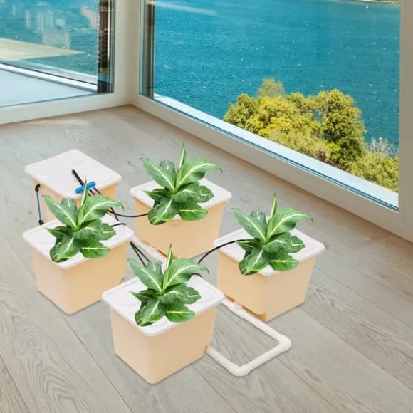 Kraftfullt DWC-hydroponiskt hinksystem för färska örter och grönsaker hemma: slitstarkt PP-material, 4W nedsänkbar pump (220–240V/50Hz) och 11L kapacitet per hink för optimal vatten- och näringstillförsel.