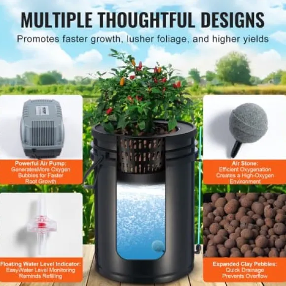 Detta hydroponiska odlingssystem är utformat för effektiv och bekväm odling av bladgrönsaker och erbjuder en komplett deep water culture-uppsättning med ett toppdroppbevattningskit. Dess hållbara, korrosionssäkra material och användarvänliga funktioner säkerställer långvarig och problemfri växttillväxt, medan den kraftfulla luftpumpen och luftstenarna ger optimal syresättning för hälsosam rotutveckling. Systemet levereras med alla nödvändiga tillbehör för enkel installation och underhåll.