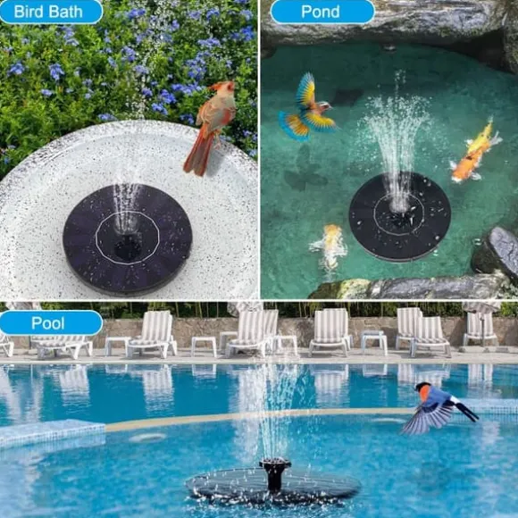Mångsidig användning: Placera den här vattenfontänen i fågelbadet, poolen, dammen eller annat vatten för att skapa en vacker vattendekoration.