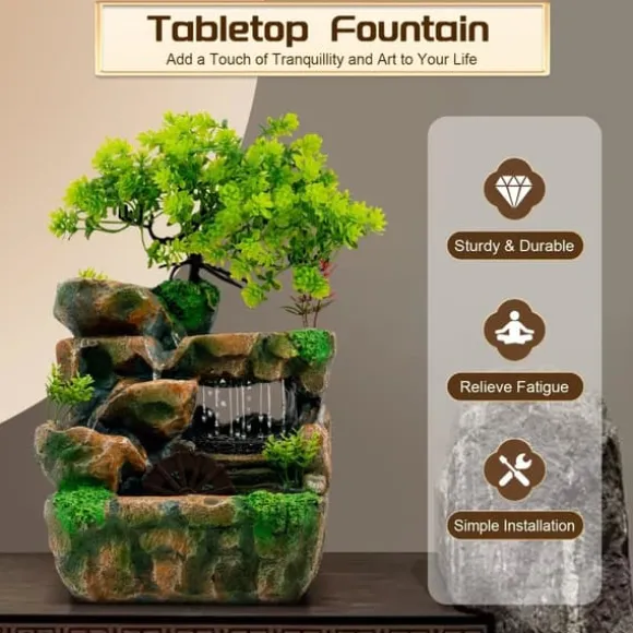 Avslappnande bordsfontän för moderna hemDenna kompakta bordsfontän i hållbart harts för in naturens lugn i ditt hem eller på kontoret. Det mjuka porlandet och den färgväxlande LED-belysningen skapar en rogivande stämning. Den gröna varianten passar perfekt i moderna inredningar och ger ett fräscht, naturligt uttryck.