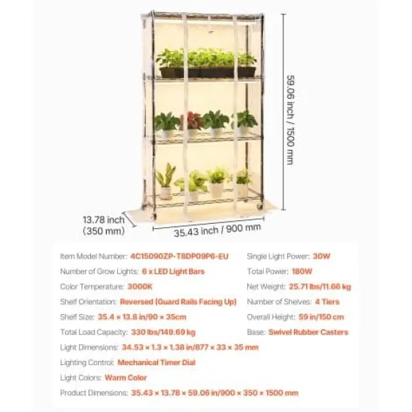 - Antal växtlampor: 6 x LED-ljusstavar