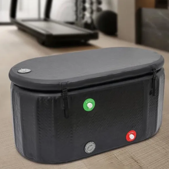 Bärbart kallbadkar med lock och pumpFå effektiv återhämtning med ett uppblåsbart isbad i svart. Perfekt för kallterapi efter träning, som svalkande station på evenemang eller för avkoppling – inomhus, utomhus eller på resa. Hållbart material, enkel montering och bra isolering för vuxna och idrottare.
