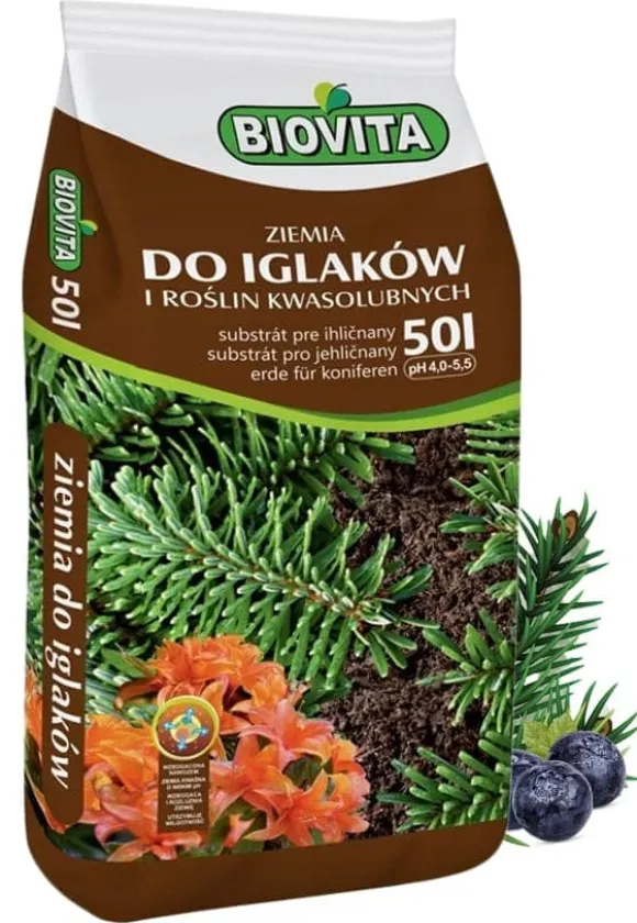 Biovita-jord med en kapacitet på 50 l är ett idealiskt substrat för plantering och omplantering av barrträd och buskar , såväl som växter som kräver sur jord: azaleor, rhododendron, hortensior, blåbär, ljung och ljung. Den noggrant utvalda kemiska och fysikaliska sammansättningen och blandningens specificitet gör att växterna trivs med den, och lämplig gödsling säkerställer optimal tillväxt och korrekt färgning av barr och blommor. Högmossans torv och bark som finns i substratet upprätthåller en lämplig