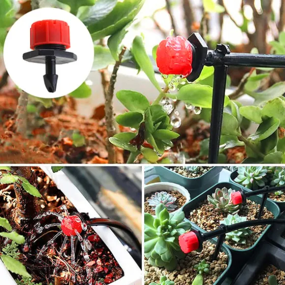 Mångsidigt dropphuvud: Dessa dropphuvuden är tillverkade av PVC och ger en mångsidig lösning för droppbevattning i trädgårdar, växthus och krukväxter. Med sin justerbara flödeshastighet säkerställer den effektiv och otpimal bevattning.