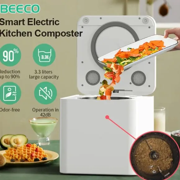 Elektrisk kökskompost – Brun, EU-kontakt Denna kompakta kökskompost omvandlar matrester automatiskt till näringsrik jordlik massa och minskar hushållsavfallet varje vecka. Perfekt för hem som vill minska lukt, spara plats och göra något bra för miljön.