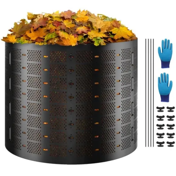 Effektiv luftcirkulation: Hålen i kompostbehållaren för trädgården möjliggör utmärkt luftcirkulation, vilket förbättrar ytkontakt och fermentation. Detta påskyndar komposteringen av material som löv, gräsklipp, kartong, kaffesump och köksavfall.