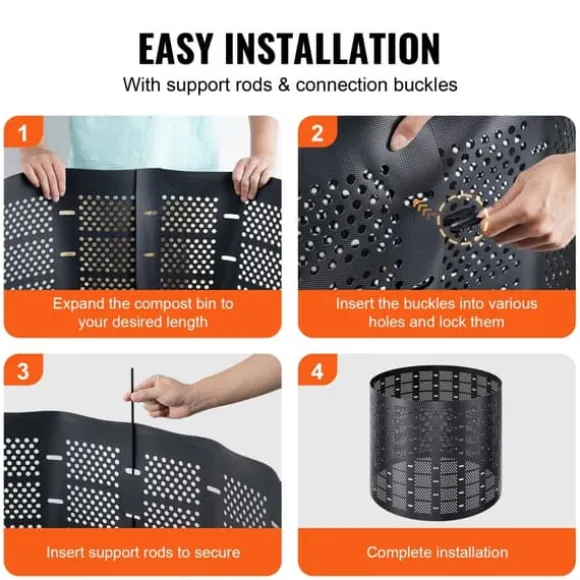 Enkel installation: Installationen är snabb och enkel, vilket gör att monteringen blir en barnlek! Montering av kompostern för utomhusbruk är enkel och kan slutföras på bara 5 minuter!