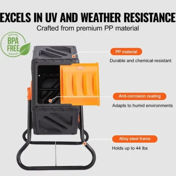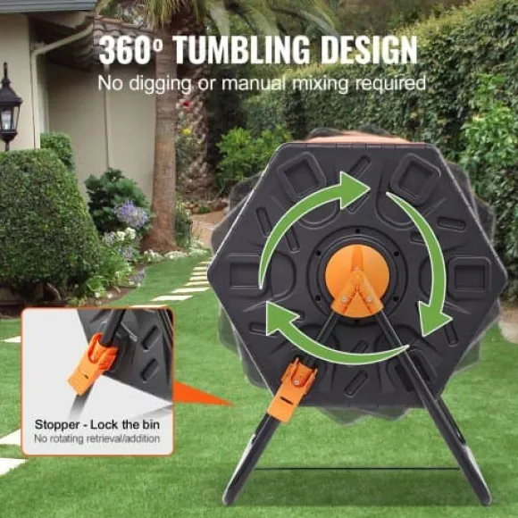 Denna kompakta kompostbehållare är utformad för effektiv och platsbesparande kompostering, vilket gör den idealisk för trädgårdar, kök och utomhusutrymmen med begränsat utrymme. Den roterande kammaren och skjutdörren ger enkel åtkomst och grundlig blandning, vilket säkerställer snabb nedbrytning och högkvalitativ kompost. Tillverkad av hållbara, BPA-fria material, tål den olika väderförhållanden och håller skadedjur borta.