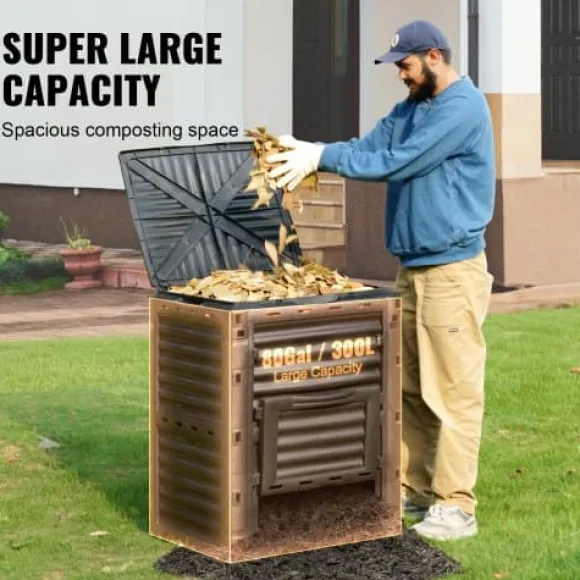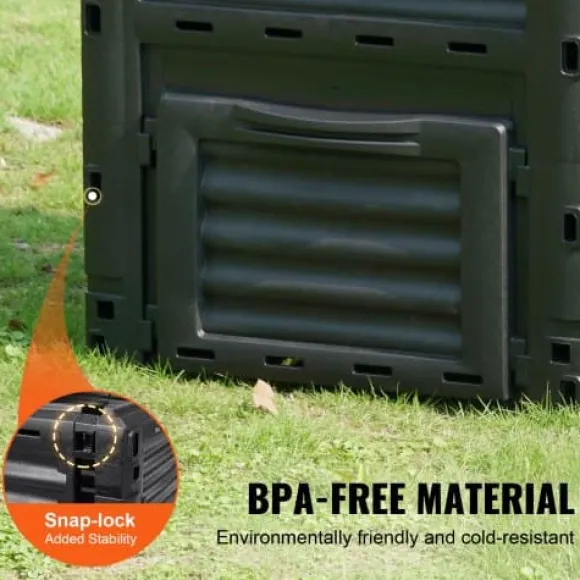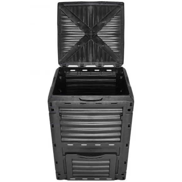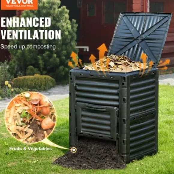 Denna stora utomhuskompostbehållare är utformad för effektiv kompostering och har utmärkt ventilation på alla sidor samt ett säkert topplock och en bottenlucka för enkel åtkomst. Den rymliga kapaciteten gör den idealisk för hantering av trädgårdsavfall och matrester, medan det BPA-fria, UV-beständiga materialet säkerställer hållbarhet och säkerhet. Snabb att montera och lättviktig, hjälper den dig att skapa bördig jord snabbare till din trädgård.