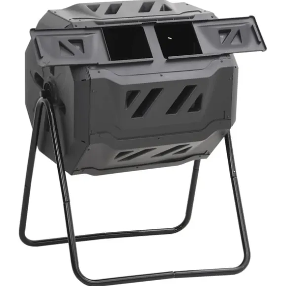 - Praktisk design: Kompostlådan med två separata utrymmen är mycket bekväm. Medan nedbrytningen sker på ena sidan kan nytt material fyllas på på den andra sidan.