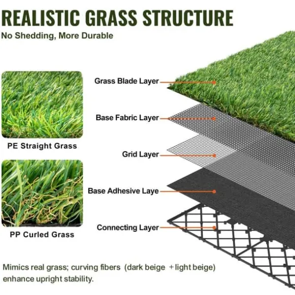 Premium PE-material: Detta konstgräs är tillverkat av högkvalitativt PE-material som säkerställer hållbarhet och lång livslängd. Dess UV-beständiga design gör att färgerna förblir livfulla även vid långvarig exponering för solljus, så att du kan njuta av en grön oas året runt.