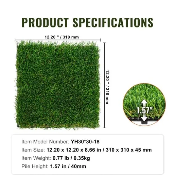 Enkel installation: Tack vare sin modulära konstruktion är detta konstgräs otroligt enkelt att installera och kräver inga särskilda färdigheter eller verktyg. Du behöver bara sätta ihop gräsmattorna enligt dina behov, och installationen kan snabbt slutföras, vilket ger en enkel men effektiv lösning för dina gräsbehov.