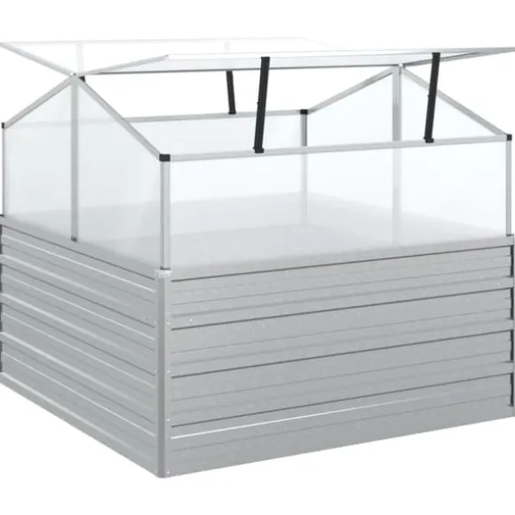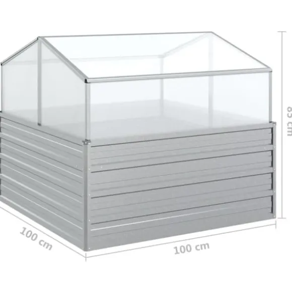 Upphöjd odlingslåda med växthus 100x100x85 cm silver Denna upphöjda odlingslåda i galvaniserat stål med växthus är mycket lämplig för att odla unga plantor. Den släpper in det nödvändiga ljuset och skyddar samtidigt växterna underifrån mot dåligt väder. Upphöjd odlingslåda med växthus 100x100x85 cm silver (1x) Din beställning kommer att levereras i ett paket. Så snart din beställning har packats får du omedelbart din leveransinformation från oss. Vi hoppas att du blir nöjd med ditt köp.