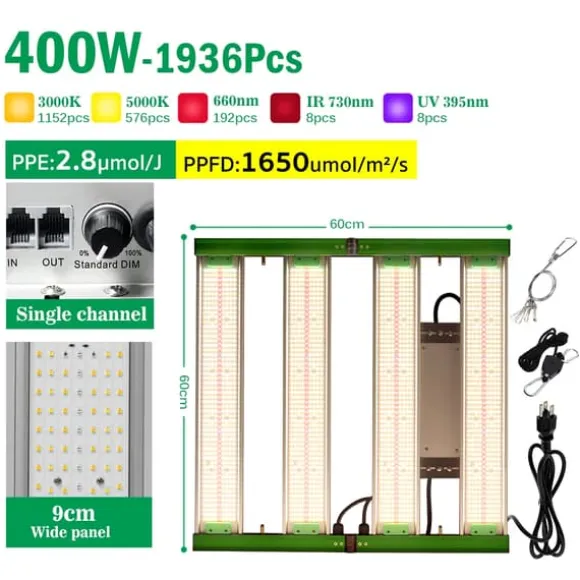 - energisnål design: med en effekt på 400w erbjuder denna lampa en energieffektiv lösning för inomhusodling, främjar hälsosam växttillväxt samtidigt som den sparar på el.